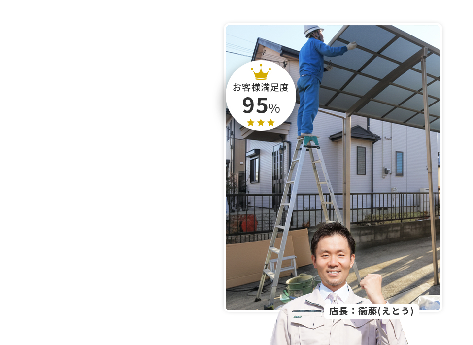 カーポートの不具合は、必ずしも全撤去が必要とは限りません。ちょっとした調整や部品の一部交換だけで改善するケースもあります。当店では現地で原因を確認し、必要最低限のプランをご提案致します。