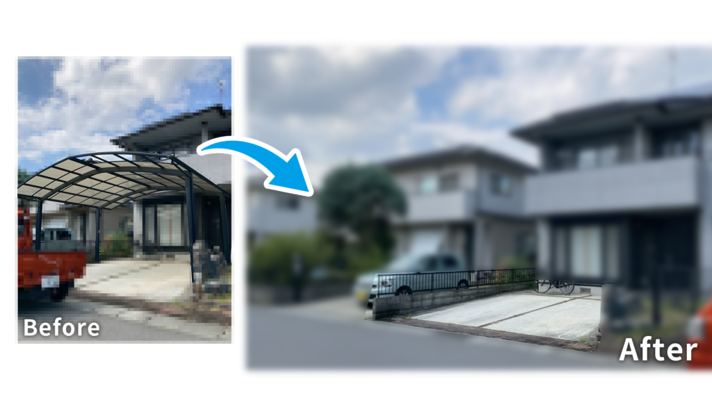 使わなくなったカーポートが場所を取っていて、車の出し入れが毎回ストレスでした。駐車スペースが広がり快適になりました。