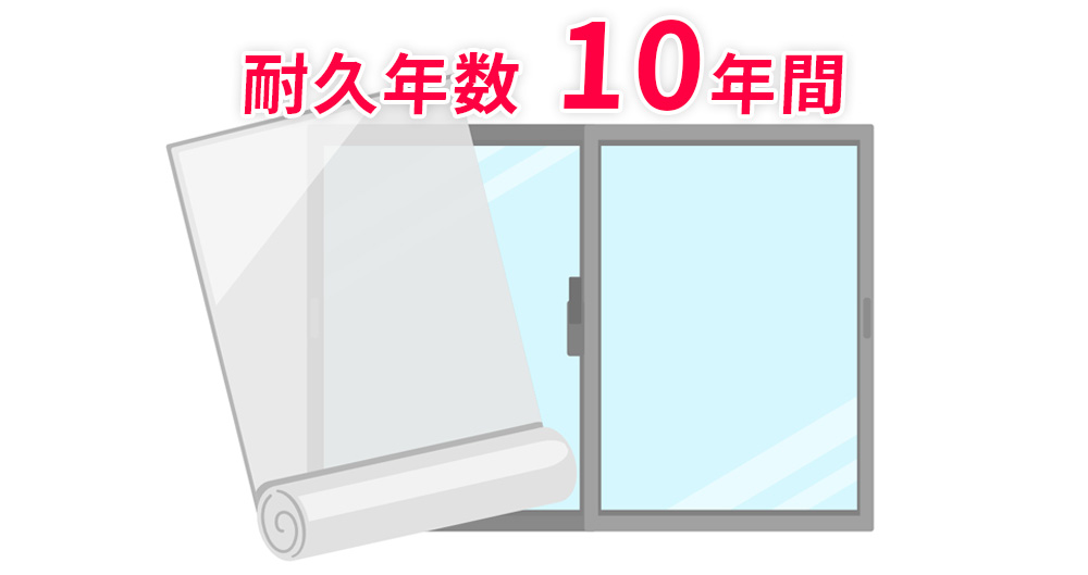 フィルムによって異なりますが、最低でも10年間は効果を発揮するとメーカーから通知されています。詳しくは現地にお伺いいたしましたスタッフから説明を致します。