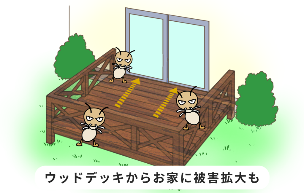また、腐食した木材を放置しているとシロアリが発生してお家にも被害が及ぶことがあります。そのため早めの対応が必要です。