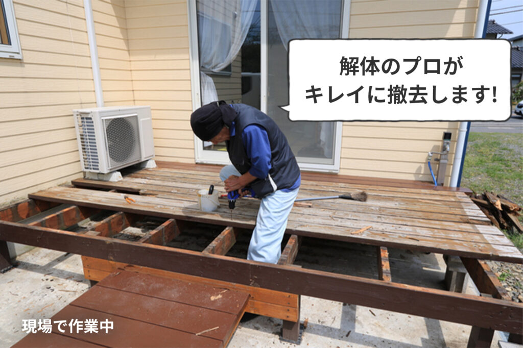 - ①ウッドデッキ解体の専門家が伺います
